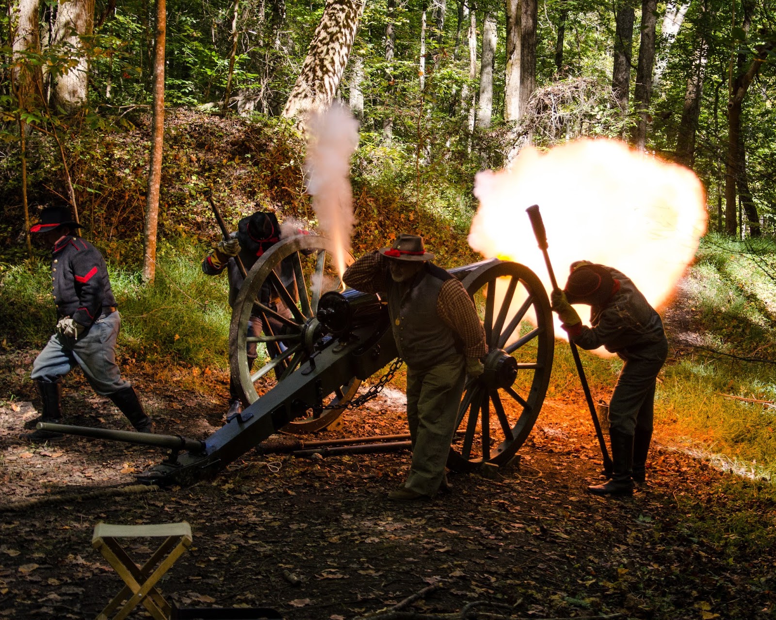 For the documentary that I have been working on, I have had the chance to photograph cannons being fired at different Civil War Reenactments around Georgia. It started out with a few shots that showed the smoke billowing out in clouds from the barrel of the cannon, but I wanted fire, lots of fire. So I did some practice and through trial and error I developed my method.