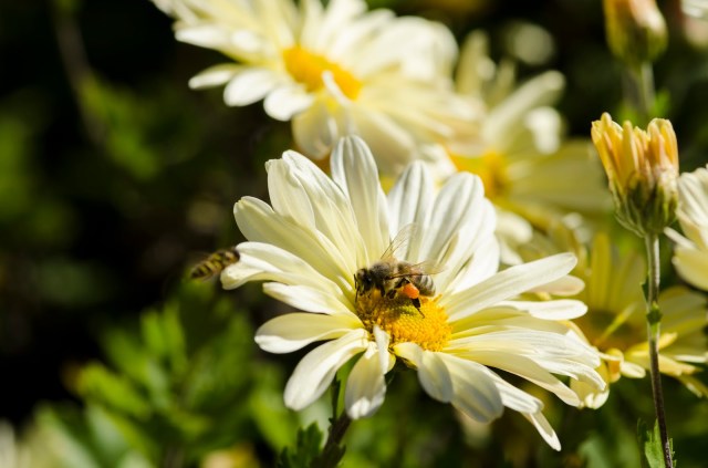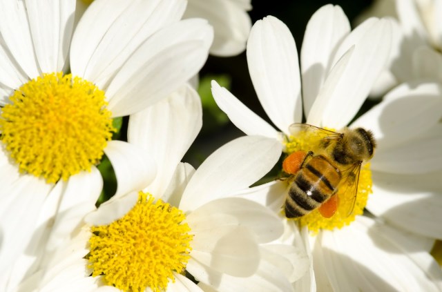 Going though some images from last year and found these really nice images of bees collecting pollen with pollen sacks on their legs. In the last picture there is a bee on the flower and another bee flying in close. I think they are pretty cool, enjoy!